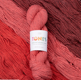 Tones is a versatile worsted weight, woolen-spun from fleece-dyed American Columbia wool into light and dark shades of round and bouncy 3-ply yarn that we overdye to create a harmonious palette of coordinated “tone pairs”.