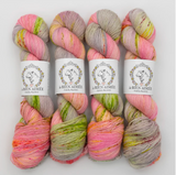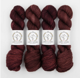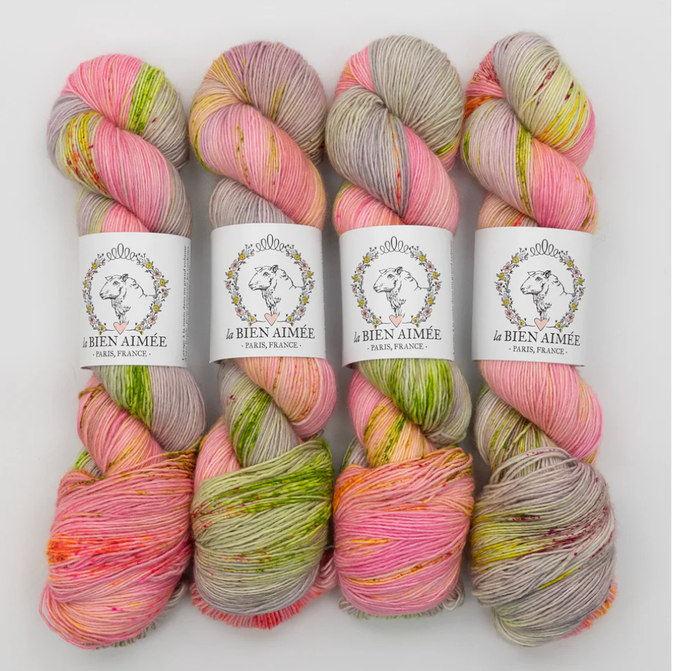 La Bien Aimée Merino Singles is a soft single-ply superwash merino with a beautiful twist. This yarn takes color beautifully and has a crisp stitch definition.