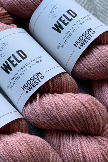 Like its big sibling, Forge, Weld is made from a heathered blend of domestically-sourced 70% Merino and 30% Corriedale wool. Weld is a well-balanced three-ply yarn, with a slightly more energetic twist for strength and durability. It has a beautiful balance of stitch definition, bounce, and wooly, cohesive bloom that produces both beautiful stockinette fabrics and delicate lace, texture, and brioche, and is perfect for stranded colorwork. Weld blooms beautifully and easily knits up on larger needles; we like it on anywhere from a US 3 to a US 6 (3.25 to 4.00 mm), depending on the application.