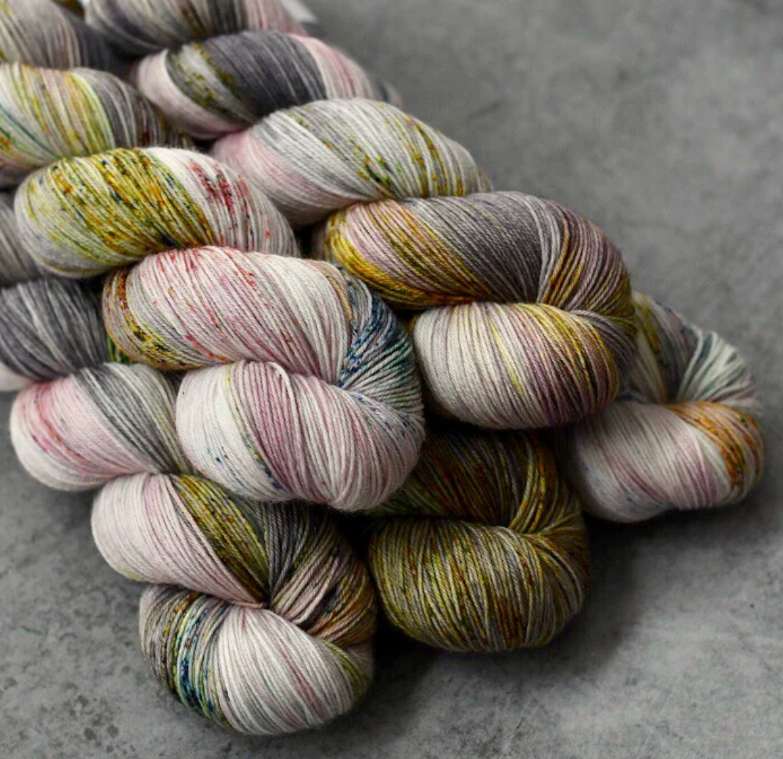Soft, smooth yet sturdy fingering-weight Merino, artisan-dyed in Paris, France. Not just for socks! Equally beautiful in garments, shawls, and accessories. Also beautiful to pair with Kumo.