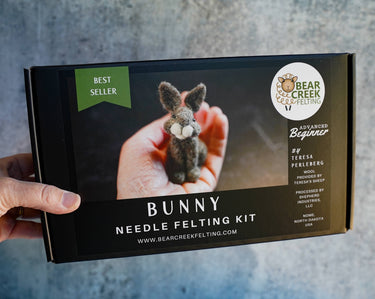 Each kit features Bear Creek Premium Wool, grown and processed on Teresa’s North Dakota farm. Her flock has been selectively bred for over a decade to produce the best wool for needle felting — soft, dense, and perfectly suited for sculpting firm, detailed shapes. Each kit includes natural grey wool (colors vary slightly) with white accents for facial details and tail.