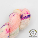 Alix is made to be knit either double with itself, or with other lace weight yarns, resulting in a sport weight gauge. It can also be a super soft substitute to either of these bases. It is soft and drapey, perfect to be worn next to the skin or around the neck. What's more, it's incredible yardage means you can get a sizable shawl out of just one skein.